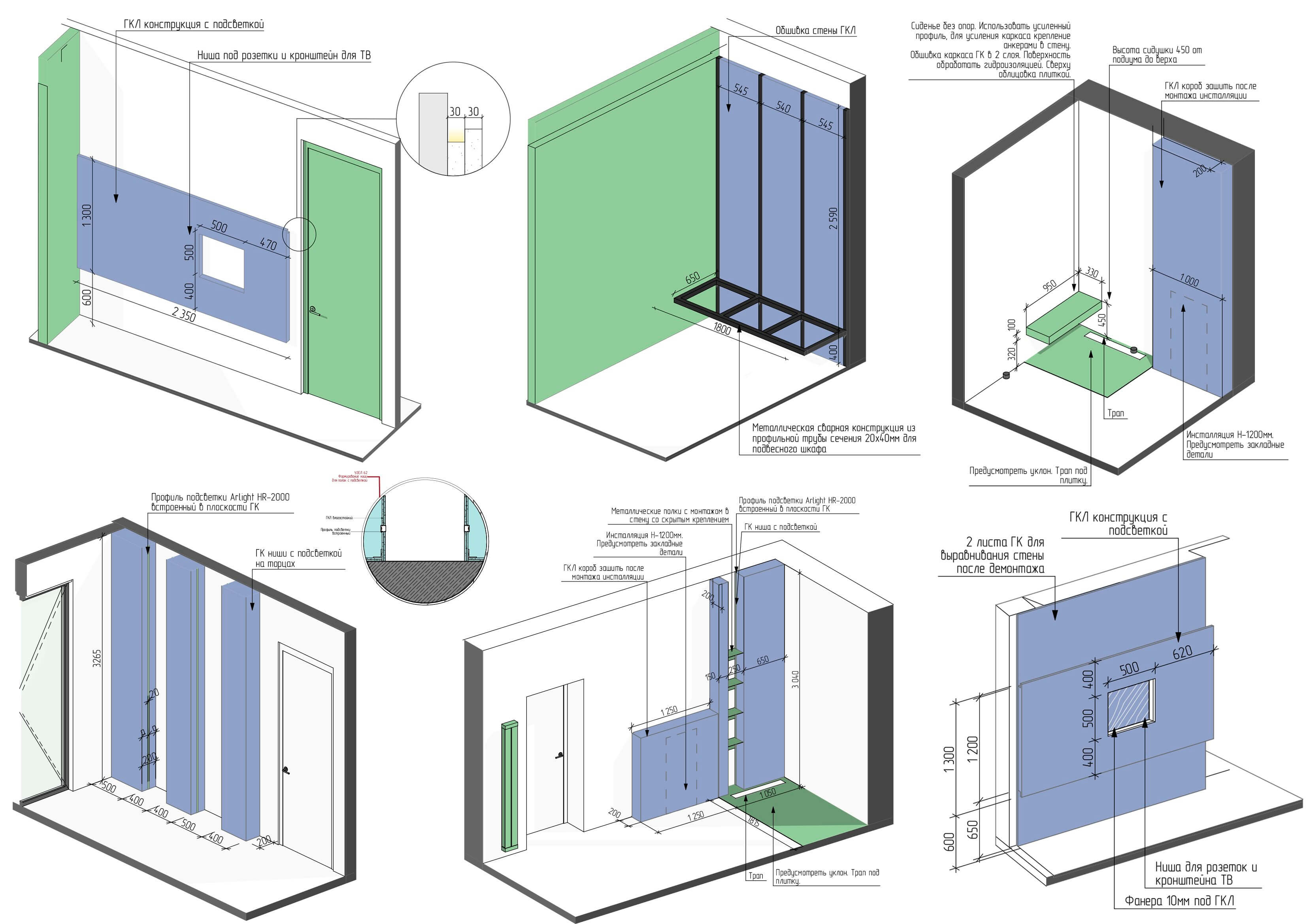 Разрабатывается полный комплект рабочих документов, необходимых для реализации дизайн-проекта. Мы продумываем все технические моменты вашего интерьера. Все чертежи мы делаем в объеме, за счет чего мы не упустим ни одну деталь и это позволяет нам минимизировать ошибки и увеличивает скорость проектирования.